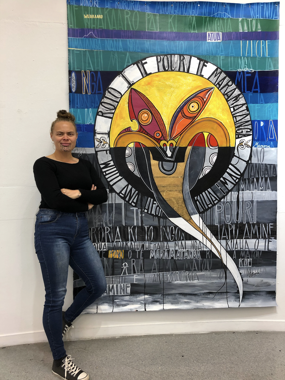 Erena Koopu is a painter and Maori performing artist is committed to sustaining Māori culture through art by guiding and helping people to explore and discover their own creative core. Erena is a Kohanga Reo, Kura Kaupapa and Wharekura graduate who prides herself in all things Māori. She was also one of the first students to graduate with a degree from EIT Tairāwhiti’s Toihoukura – School of Māori Visual Arts. Since that achievement, she has come full circle and now uses her position as senior lecturer to broadening knowledge of toi Māori through teaching and engagement. Her role allows her to investigate art in a framework that encompasses all aspects of Te Ao Māori for students who may have little to no experience of a Māori worldview of art and its related protocols.